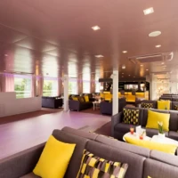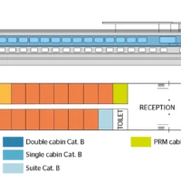 Located on the upper deck, the lounge / bar (at the front) and the restaurant (at the rear) have wide panoramic windows. The cabins are spread over two decks: on the upper deck, they have large windows with French balconies; on the main deck, they have large windows. Do not hesitate to go to the sun deck to relax! It is