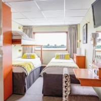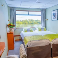 The common areas are located on the upper deck and the cabins are spread over two decks and have large windows. Do not hesitate to go to the sun deck to relax!