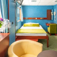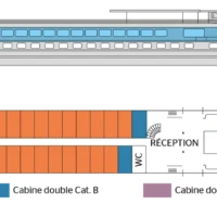 The MS La Bohème is a standard ship that measures 110m long and 10m wide and accommodates 158 passengers in 79 cabins on 2 decks. The size of each cabin is 10m2 (there is also a suite of 18m2), offering amenities and providing guests with all the comforts they need during their stay. The refined decoration and the elegant and friendly atmosphere are in perfect harmony with its environment. Yellow and blue, symbols of light and water, blend together perfectly to give the boat a warm atmosphere.
