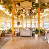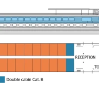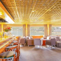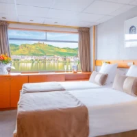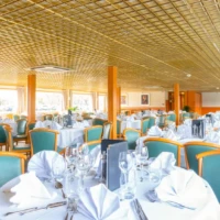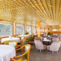 Completely renovated in 2011, the MS Leonardo Da Vinci is an intimate-sized standard ship, measuring 105m long and 11.40m wide. It can accommodate 143 passengers, in 72 cabins spread over two decks. The cabins are comfortable and spacious, offer amenities and provide guests with all the comforts they need during their stay. The decoration, in beige and taupe tones enhanced with gold, is both discreet and elegant and pays tribute to the artist’s works. Located on the upper deck, the restaurant, where all meals are served during the cruise, offers delicate cuisine in a refined setting, where large windows allow guests to enjoy the panorama. Also on the upper deck is the lounge / bar with a dance floor. The sun deck is the ideal place to relax and admire the landscapes, offering comfortable sun loungers, as well as a large shaded area.