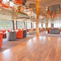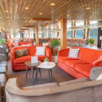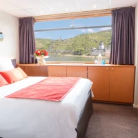 Completely renovated in 2016, the MS Europe is an intimate-sized standard ship, measuring 110 m long and 11.40 m wide. It can accommodate 180 passengers, in 90 cabins spread over three decks. The size of each cabin is between 9m2 to 13m2 offering amenities and providing guests with all the comforts they need during their stay. The chocolate, beige and orange tones of its chic and contemporary decoration give it a warm, elegant and welcoming atmosphere. Located on the main deck, the restaurant, where all meals are served during the cruise, offers delicate cuisine in a refined setting, where large windows allow guests to fully enjoy the panorama. On this same deck is also the lounge / bar with a dance floor, while on the sun deck passengers can enjoy comfortable sun loungers, as well as a large shaded area. An ideal place to relax and admire the landscapes.