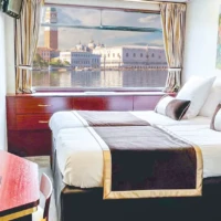 The size of this ship allows it to cruise the Venetian Lagoon and to moor close to Saint Mark’s Square!