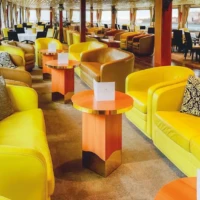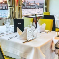 The restaurant is located at the back of the main deck and the lounge / bar at the front. The sun deck with sun loungers is the perfect place to relax and admire the panoramic view of Venice.