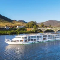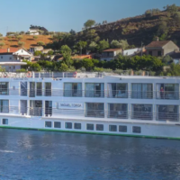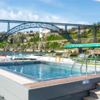 Built and inaugurated in 2017, this ship highlights the famous wines and architecture of Porto. The burgundy color, blond wood and black steel rims remind us of Port wine and its barrels. The riveted steel structures and the photos at reception refer to the architecture of the Eiffel bridge which gives the heart of the city its special character.