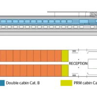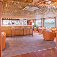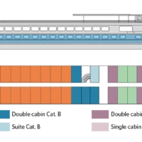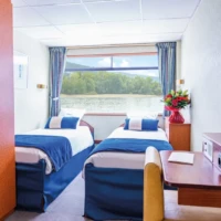 Completely renovated in 2011, the MS Modigliani is an intimatesized standard ship, measuring 110m long and 11.40m wide. It can accommodate 159 passengers, in 78 cabins and one suite spread over two decks. The size of a cabin is 11m2 (16m2 for the suite) offering amenities and providing guests with all the comforts they need during their stay. The elegant decoration and friendly atmosphere, are in perfect harmony with its environment. Located on the upper deck, the restaurant, where all meals are served during the cruise, offers a delicate cuisine in a refined setting, where large windows allow you to fully enjoy the panorama. On this same level is also the lounge / bar with a dance floor, while on the sun deck, an ideal place to relax and admire the landscapes, passengers can enjoy comfortable sun loungers,