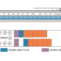 The main deck cabins have large windows, and the upper deck cabins feature a French balcony with sliding-glass doors. All meals during the cruise are served in the restaurant on the main deck, which can be accessed directly from the lounge and bar. The restaurant is surrounded by panoramic windows that give fantastic views of the scenery as it flows by. The lounge and bar on the stern of the upper deck is where cocktails, games, dancing, and other funfilled evenings take place.