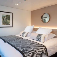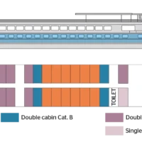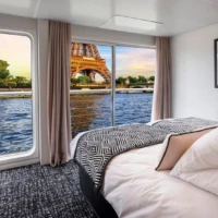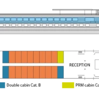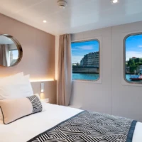 The cabins are spread over two decks: on the upper deck, they have large bay windows with French balconies; on the main deck, they have large windows. Located on the upper deck, the restaurant, where all meals are served during the trip, offers delicate cuisine in a refined setting, where large bay windows allow you to fully enjoy the panorama. On this same deck is also the lounge / bar with a dance floor. Comfortable sun loungers are provided on the sun deck with a large shaded area, the ideal place to relax and admire the surrounding landscapes.