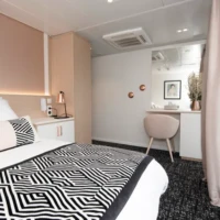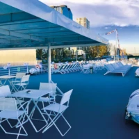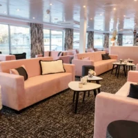 By adopting the “French chic” spirit, the ship’s design emphasizes elegant and graphic classicism, inspired by the friendship between Coco Chanel and Auguste Renoir. Powder pink colours subtly alternate with dark grey tones which provide the ship with a warm atmosphere.