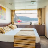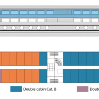 The MS Vivaldi is a superb Premium ship, measuring 110 meters long and 11,40 meters wide. It can accommodate 176 passengers, in 88 cabins spread over three decks. The size of each cabin is between 9 m2 and 13 m2, offering amenities and providing guests with all the comforts they need during their stay. The decoration is stylish and its atmosphere, both elegant and friendly, and in perfect harmony with its surroundings. Located on the middle deck, the restaurant offers a delicate cuisine in a refined setting, where large bay windows allow guests to fully enjoy the panorama. Also situated on the middle deck is the lounge / bar with a dance floor, while a piano bar welcomes passengers on the upper deck, in an intimate and cozy atmosphere. Comfortable sun loungers are provided on the sun deck, with a large shaded area, the ideal place to relax and admire the surrounding landscapes.