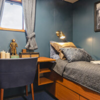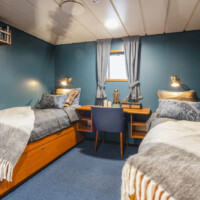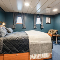 Explore the Arctic in style aboard our small expedition ship, the MV Freya. With a recently upgraded interior and a solid ice strengthened hull, this vessel is perfect for traversing Arctic waters, whilst retaining first class comforts. Originally used as a lighthouse-building vessel, MV Freya boasts spacious cabins and multiple viewing decks to immerse yourself in the wonders of the Arctic.