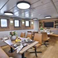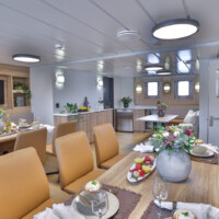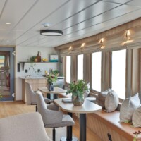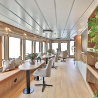 - Located on deck 1 the restaurant offers comfortable seating for 12 guests across 3 tables with relaxed bench style seating and a modern, light Scandinavian interior.