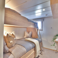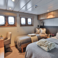 - 8 Spacious cabins with modern decor, comfortable beds and ensuite bathrooms with a choice between doubles, twins or singles.