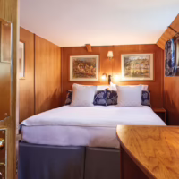 Napoléon features six luxury cabins, each with a cosy ensuite bathroom. Relax with breakfast in bed for some early morning peace or unwind in the stately lounge, on deck or in the outdoor jacuzzi after a day’s explorations. All six cabins can be reconfigured to your needs––the perfect choice for groups and families.