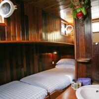Her traditional interior, reminiscent of a classic yacht, features a warm décor of rich varnished hardwoods, stained glass and shining brass. The traditionally furnished saloon and dining area have a warm and welcoming country house atmosphere and there is an additional upper saloon area with more comfortable seating to relax in. Nymphea has three compact, but comfortable cabins, two twin staterooms and one twin or double stateroom, all with air conditioning and en suite facilities.