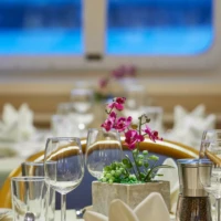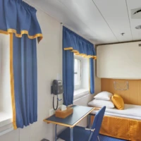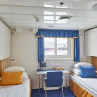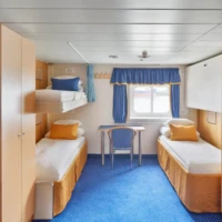 For our air-cruises, Ocean Nova has a capacity for 67 passengers accommodated in comfortable outside cabins. The ship offers three categories of accommodation: dedicated Single Cabins, Twin Cabins, and Triple Cabins. All cabins feature a picture window, a writing desk with a chair, a wardrobe, an individually controlled heating system, and a private bathroom with a shower.