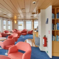 In addition to a glass-enclosed observation lounge and presentation room, Ocean Nova also has a spacious dining room, a bar, a library, a small gym, and an infirmary. The ship has a fleet of 7 Zodiac boats that are well suited for disembarking and wildlife watching.
