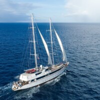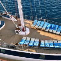 Imagine 164 feet of comfort, sleek beauty, and safety classified by the latest International “Safety of Life at Sea” (SOLAS) standards. Imagine your floating home on board the sleek, classic design Motor Sailer as she spreads her white sails through the seas under the name PANORAMA II, waving her Greek flag through the wind. Discover the world by sea at 10 knots per hour, in her un-rushed pace, one island or seashore at a time on board the ultimate 2 masted motor sailer. Panorama II loves to seduce her select 49 guests with her classic lines and wood paneled lounges redefining what yachting was meant to be. A spacious lounge with ample space, dining areas decorated with warm colors, rich library and a deck for sunbathing, shaded areas and outdoor bar and loungers are just some of the elements that define her essence. 360° views of unobstructed ocean are your eyes’ canvas painted with ocean blue and deep green mountains. Embrace freedom as the Panorama II sets her white sails seduced by the clear winds of the sea. Mingle with like-minded travelers in our public areas, enjoy a moment to yourself in our ample deck space, or retreat to one of our 25 ocean view cabin-sanctuaries all offering windows or portholes connecting you with mother nature’s wonders.