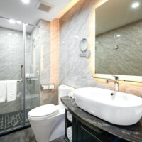 Being far and away the most premium cabin offered on any ship in Lan Ha Bay, the Captain’s View Grand Suite is located on the upper deck at the front of the ship, with the option for two single beds or a double bed. The large forward-facing terrace highlights the bay, and promises to be treasured private space during the cruise. The spacious cabin allows for a walk-in closet, safe, television, bedside table and light, and other amenities to add the final special touch. The large en-suite marble bathroom features a bathtub and standing shower, with luxury shampoos, soaps, and other self-care products.