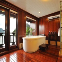 The ultimate in luxury travel, a Paradise Peak Premium Suite sets the bar for a sumptuous Halong Bay cruising experience. Featuring panoramic windows – even in the bathrooms – and a private front terrace perfect for uninterrupted views, the Premium Suite will exceed the expectations of even the most discerning traveler.