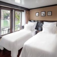 A traditional wooden junk designed for a personalised experience, the Paradise Sails is the perfect blend of chic, modern styling and traditional Vietnamese detailing. The warm, wooden interior exudes classic charm without skimping on comfort. The sophisticated dining room, perfect for intimate dining, offers tailored menu options, Vietnamese royal-like menu, and a wide range of drink selections. The spacious sundeck with sun beds and comfortable lounge areas guarantees spectacular views of the karst limestone formations and emerald waters of Halong Bay. And with a world-class day spa on board, this wooden palace redefines luxury cruising in Halong Bay. Come to HaLong Bay Cruise to experience it right away