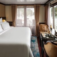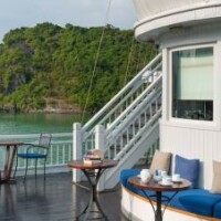 Located on the second deck, each Deluxe Balcony Cabin includes a private, furnished balcony, as well as all the amenities and features of the Deluxe Cabin. The private balcony ensures unobstructed views of the spectacular Halong Bay at any time of day or night – perfect for couples celebrating special occasions.
