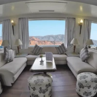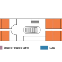 The RV Da Vinci is a magnificent premium ship, measuring 72 meters long and 13,60 meters wide. It can accommodate 108 passengers, in 54 cabins spread over 3 decks. Each cabin has a size of 16 m2(plus 2 suites of 32 m2 each), offers amenities and provides guests with all the comforts they need during their stay. The decoration is stylish and its atmosphere, both elegant and friendly, is in perfect harmony with its surroundings.