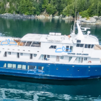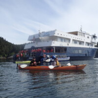 Onboard Features: kayaks, paddleboards, inflatable skiffs, hiking poles, snorkel gear/wetsuits; one on-deck hot tub (open Alaska cruises only); fitness equipment and yoga mats; rubber boots from women’s size 5 to men’s size 12, medium width; reusable water bottles; DVD and book library and full-beam swim step for loading and off loading.