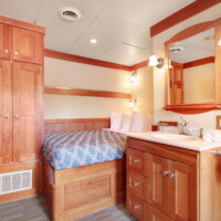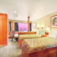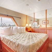 Three decks accessible to guests are designed for your comfort and sense of adventure. The Bridge Deck offers the rooftop sun lounge, exercise equipment, hot tub (open during Alaska cruises only), open bridge, and the Commodore Suites. The cabin deck houses guests in the Navigator and Trailblazer categories, as well as the Jr Commodore and one Admiral cabin. The main deck holds the larger Admiral suites as well as the luxurious common areas.