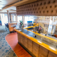 The Dining Room features open seating table service at set times. Unlimited beverages, alcoholic and non, are included in the price of the cruise. Vegetarian options are always available, and dietary restrictions are happily accommodated with advance notice.