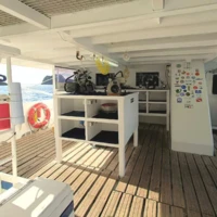 The spacious craft has everything a serious diver or photographer could ask for. Individual gear lockers, private camera/strobe storage bins with 110 & 220 ac power, dual camera rinse tanks and even a drone takeoff/landing pad.
