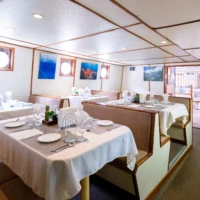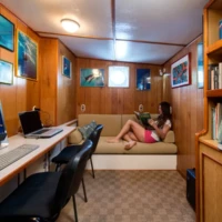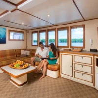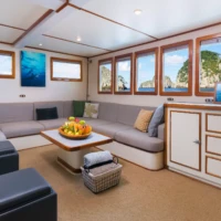 Ten comfortable staterooms accommodate every amenity with plenty of room for up to 20 passengers, including ensuite controllable air conditioning, hot water showers, daily housekeeping and complimentary laundry service. Ample public spaces include an indoor lounge and study plus an expansive sundeck for relaxing in between dives.