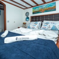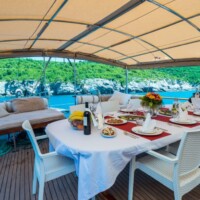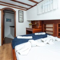 The aft deck has an outdoor dining area and a comfortable cushioned seating area, providing the perfect place to relax whilst Cruising the Adriatic sea, this area is also shaded for your comfort. This fabulous gulet is very well maintained, the latest update is the upper fly bridge with a seating area, providing a wonderful setting to enjoy a drink and watch the sunset before dinner. The spacious fore deck has cushioned sunbeds and a seating area with cocktail tables. Sirena also provides a sailing system, a 3.80 metre tender with 50 HP outboard. Plus, a variety of water toys for your enjoyment, including banana, ringo, SUP, kayak and fishing equipment. Sirena is a really top choice, offering great value, with all her up to date facilities and great levels of service, from the crew of 4 attentive personnel. For groups, or couples, wishing to charter a gulet in the Adriatic region. Sirena is a perfect choice to ensure you and your guests have a magical gulet cruise, along Croatia coastline and islands.
