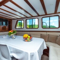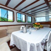 Sirena is a beautiful classic ketch design gulet, based in Zadar, Croatia. Sirena is a luxury gulet, 28 metres in length, with 6 en suite fully air conditioned cabins, she can accommodate up to 12 guests in style and comfort. The cabins consist of 6 double cabins tastefully styled and equipped. There is a spacious salon, which is also air conditioned and offers an indoor seating and dining area, with TV, music system, internet and bar area.