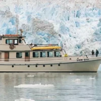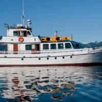 | Ideal for research and education programs, she sleeps 12 passengers in 6 private cabins (double occupancy), with 3 heads and two showers. The main deck features a spacious, airy salon, natural history library, galley and dining area. Large windows provide great viewing on all sides with easy access to the deck. The upper bridge deck provides a good vantage point for spotting wildlife and comfortable seating for passengers who wish to get inolved with the navigation of the ship. Snow Goose is a US Coast Guard certified passenger vessel. The Snow Goose runs our Southeast Alaska departures along with the Island Odyssey. |