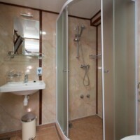 The cabins are equipped with beds measuring either 200×80 cm or 200×170 cm. Cabins are made under new standards, each cabin has independent air-condition, central ventilation system, Safe deposit box, smoke and fire alarm, internal radio system (also for announcements from captain or tour leader), lifejackets, cupboard, cabinet, a small table with chair and porthole or window. Luggage space is under the bed.