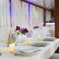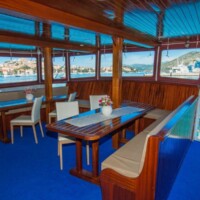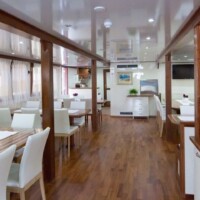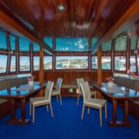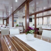 Fully air-conditioned salon-restaurant (72 m2) is on the main deck where guests can have their privacy, large enough for all passengers, equipped with bar and LCD TV, each table has easy-access chairs.