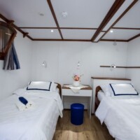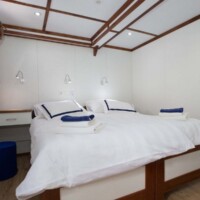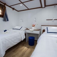 5 cabins convertible into King size double or twin beds, size 13-14 sq. meters of which 4 cabins have an additional extra bunk bed