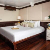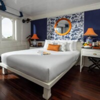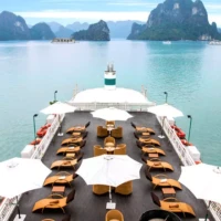One of the prettiest ships in Halong, the steel-hulled Au Co is a Halong Bay luxury cruise that offers smooth sailing through Halong and Lan Ha bays. Retrace the steps of colonial-era explorers in vintage style aboard this 32-cabin ship, visiting hidden beaches, forested islands, and gorgeous sea lakes.