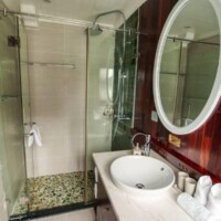 Located aft on the Upper Deck, our 2 Grand Deluxe Cabins are ideal for discerning travelers who enjoy quiet comfort and expansive views framed by panoramic windows. With 20 sqm of space, cabins feature dark wood flooring and furnishings and a clean, contemporary design in shades of green and gold. Well-designed bathrooms include a glass-enclosed shower.