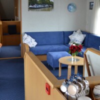 On the upper deck you will find the nice and cozy salon with heating, air conditioning, large panoramic windows, a restaurant area, lounge corner and a small bar. Wi-Fi is available. The Zwaantje also has a very spacious sun deck with chairs and tables where you can relax, enjoy the scenery while sailing or join the skipper in the wheel house.