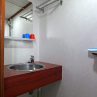 On the lower deck, the Zwaantje has twelve comfortable guest cabins. Ten twins (7 m² – 75 sq.ft.) with two separate single beds and two doubles (6 m² – 65 sq.ft.) with one double bed. Each cabin has a private shower, toilet and basin. All cabins have ventilation, central heating, air-conditioning and a window; the windows in the doubles can be opened, the windows in the twins are fixed for safety reasons. Furthermore, in each cabin you will find a mini safe and hair dryer.